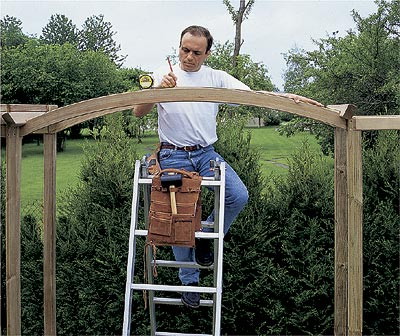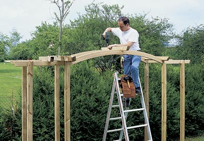 Характерная для английских садов ХIХ в., пергола вновь становится распространенным элементом украшения наших приусадебных участков. Она может с успехом оживить ворота или калитку, затенить вымощенную площадку или придать оригинальность и колорит невыразительному пространству в глубине сада. Беседку можно сделать из хвойных или экзотических пород дерева: северной сосны, красного кедра и других, располагая временем и электроинструментами. А проще - купить в магазине для садоводов готовый комплект деталей для сборки перголы.